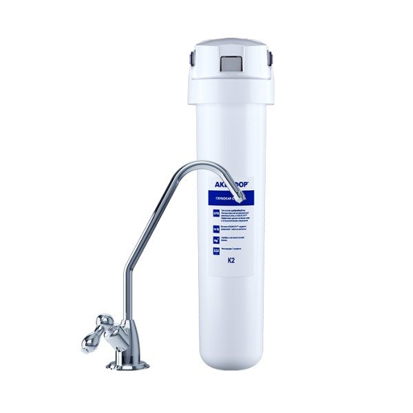 Обратноосмотические фильтры используются для абсолютной защиты от накипи, т.к. полностью устраняют соли жесткости из воды.нетЧисло ступеней очисткиКартриджи последовательно очищают воду и от видимых примесей, и от растворенных. Первый картридж задерживает более крупные частицы, а каждый последующий - более мелкие. Чем больше ступеней - тем лучше фильтр очистит воду: поймает более мелкие видимые частицы ржавчины, песка и ила, успеет захватить из воды максимум растворенных примесей - хлора, нитратов, тяжелых металлов и других.1МинерализацияПроисходит после финишной очистки воды. Необходима прежде всего в фильтре обратного осмоса, поскольку такой фильтр полностью устраняет из воды все примеси, в том числе минералы. Минералы добавляются в оптимальной концентрации - для пользы и привычного вкуса воды.нетПостфильтрацияФинальный этап очистки воды: картриджи постфильтрации удаляют самые мелкие механические частицы и кондиционируют воду, придавая ей более приятный вкус.нетНакопительная емкостьОбычно нужна в фильтрах обратного осмоса. Глубокая фильтрация требует времени. Чтобы Вам не приходилось ждать, пока вода наберется в чайник или кастрюлю, почти во всех моделях используется накопительный бак для чистой воды или другая емкость. В стандартном фильтре обратного осмоса под мойку воды в баке достаточно для семьи из 5-6 человек.нетФильтрующий модуль в комплектедаОтдельный крандаДавление в водопроводе не более, атмМаксимальное давление воды на входе в систему, при котором возможна стабильная работа фильтра.6,5Ширина, смОбратите внимание на габариты фильтра, и измерьте, сколько свободного пространства в предполагаемом месте установки.9,0Глубина, смОбратите внимание на габариты фильтра, и измерьте, сколько свободного пространства в предполагаемом месте установки.9,0Защита корпуса от гидроударовдаИсходная водаЖесткая вода – вода с избытком минеральных солей. От нее появляется накипь в чайнике, известковый налет на сантехнике и разводы на посуде. Мягкая вода – та, в которой мало минеральных солей. Нет накипи в чайнике и разводов на посуде. Фильтры для мутной воды и фильтры от ржавчины, как правило, имеют несколько стадий очистки и дополнительный полипропиленовый картридж. Он задерживает механические частицы ила, песка и ржавчины и защищает картриджи более глубокой очистки.мягкаяУстраняет мутностьМутность водопроводной воды может говорить о том, что в ней много мелких механических частиц. Важно, чтобы в фильтре был установлен дополнительные картридж механической предфильтрации (полипропиленовый) - он продлит жизнь остальным картриджам более тонкой очистки.нетУстраняет ржавчину, бурый осадокЛюбой фильтр под мойку удалит из воды крупные и мелкие частицы ржавчины. Некоторые фильтры имеют повышенный ресурс по железу: они дольше служат в такой воде, поскольку лучше подходят для удаления из воды железа и механических частиц ржавчины.нетЗащита от бактерийВсе проточные фильтры в той или иной степени защищают от бактерий. Например, добавление серебра препятствует их размножению. Это стандартная степень защиты. Если в семье есть дети, пожилые люди или аллергики, воду рекомендуется обеззараживать, то есть полностью удалять микроорганизмы. Повышенную защиту от бактерий дают фильтры с половолоконной мембраной. Это пучок труб