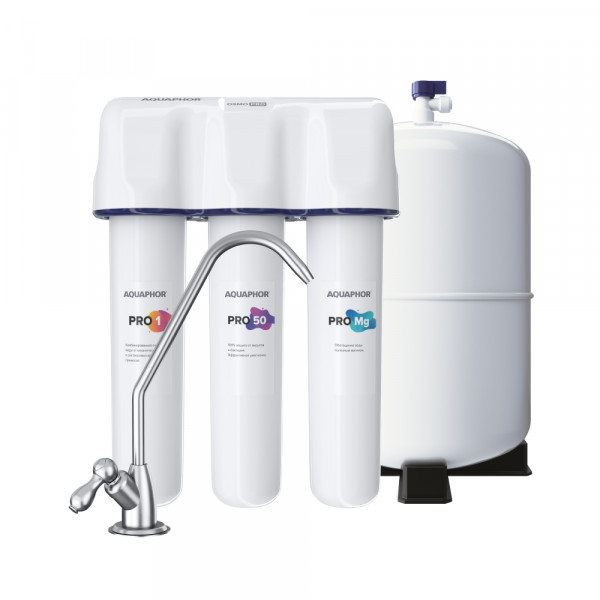 Обратноосмотические фильтры используются для абсолютной защиты от накипи, т.к. полностью устраняют соли жесткости из воды.даЧисло ступеней очисткиКартриджи последовательно очищают воду и от видимых примесей, и от растворенных. Первый картридж задерживает более крупные частицы, а каждый последующий - более мелкие. Чем больше ступеней - тем лучше фильтр очистит воду: поймает более мелкие видимые частицы ржавчины, песка и ила, успеет захватить из воды максимум растворенных примесей - хлора, нитратов, тяжелых металлов и других.4МинерализацияПроисходит после финишной очистки воды. Необходима прежде всего в фильтре обратного осмоса, поскольку такой фильтр полностью устраняет из воды все примеси, в том числе минералы. Минералы добавляются в оптимальной концентрации - для пользы и привычного вкуса воды.даПостфильтрацияФинальный этап очистки воды: картриджи постфильтрации удаляют самые мелкие механические частицы и кондиционируют воду, придавая ей более приятный вкус.даНакопительная емкостьОбычно нужна в фильтрах обратного осмоса. Глубокая фильтрация требует времени. Чтобы Вам не приходилось ждать, пока вода наберется в чайник или кастрюлю, почти во всех моделях используется накопительный бак для чистой воды или другая емкость. В стандартном фильтре обратного осмоса под мойку воды в баке достаточно для семьи из 5-6 человек.даФильтрующий модуль в комплектедаОтдельный крандаДавление в водопроводе не менее, атм3,5Давление в водопроводе не более, атмМаксимальное давление воды на входе в систему, при котором возможна стабильная работа фильтра.6,5Защита корпуса от гидроударовдаИсходная водаЖесткая вода – вода с избытком минеральных солей. От нее появляется накипь в чайнике, известковый налет на сантехнике и разводы на посуде. Мягкая вода – та, в которой мало минеральных солей. Нет накипи в чайнике и разводов на посуде. Фильтры для мутной воды и фильтры от ржавчины, как правило, имеют несколько стадий очистки и дополнительный полипропиленовый картридж. Он задерживает механические частицы ила, песка и ржавчины и защищает картриджи более глубокой очистки.любаяУстраняет мутностьМутность водопроводной воды может говорить о том, что в ней много мелких механических частиц. Важно, чтобы в фильтре был установлен дополнительные картридж механической предфильтрации (полипропиленовый) - он продлит жизнь остальным картриджам более тонкой очистки.даУстраняет ржавчину, бурый осадокЛюбой фильтр под мойку удалит из воды крупные и мелкие частицы ржавчины. Некоторые фильтры имеют повышенный ресурс по железу: они дольше служат в такой воде, поскольку лучше подходят для удаления из воды железа и механических частиц ржавчины.даЗащита от бактерийВсе проточные фильтры в той или иной степени защищают от бактерий. Например, добавление серебра препятствует их размножению. Это стандартная степень защиты. Если в семье есть дети, пожилые люди или аллергики, воду рекомендуется обеззараживать, то есть полностью удалять микроорганизмы. Повышенную защиту от бактерий дают фильтры с половолоконной мембраной. Это пучок трубок с порами размером 0,1 микрон (что в 1000 раз тоньше человеческого волоса) - бактерии и яйца паразитов “застревают”, как в “сите”. Полученную воду не придется кипятить и можно использовать для приготовления детского питания. Абсол