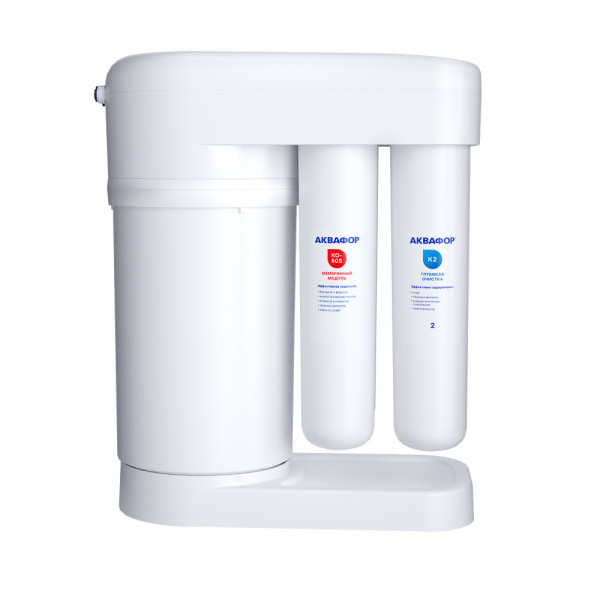 Обратноосмотические фильтры используются для абсолютной защиты от накипи, т.к. полностью устраняют соли жесткости из воды.даЧисло ступеней очисткиКартриджи последовательно очищают воду и от видимых примесей, и от растворенных. Первый картридж задерживает более крупные частицы, а каждый последующий - более мелкие. Чем больше ступеней - тем лучше фильтр очистит воду: поймает более мелкие видимые частицы ржавчины, песка и ила, успеет захватить из воды максимум растворенных примесей - хлора, нитратов, тяжелых металлов и других.4МинерализацияПроисходит после финишной очистки воды. Необходима прежде всего в фильтре обратного осмоса, поскольку такой фильтр полностью устраняет из воды все примеси, в том числе минералы. Минералы добавляются в оптимальной концентрации - для пользы и привычного вкуса воды.даПостфильтрацияФинальный этап очистки воды: картриджи постфильтрации удаляют самые мелкие механические частицы и кондиционируют воду, придавая ей более приятный вкус.даНакопительная емкостьОбычно нужна в фильтрах обратного осмоса. Глубокая фильтрация требует времени. Чтобы Вам не приходилось ждать, пока вода наберется в чайник или кастрюлю, почти во всех моделях используется накопительный бак для чистой воды или другая емкость. В стандартном фильтре обратного осмоса под мойку воды в баке достаточно для семьи из 5-6 человек.даФильтрующий модуль в комплектедаОтдельный крандаДавление в водопроводе не более, атмМаксимальное давление воды на входе в систему, при котором возможна стабильная работа фильтра.6,5Ширина, смОбратите внимание на габариты фильтра, и измерьте, сколько свободного пространства в предполагаемом месте установки.37,1Глубина, смОбратите внимание на габариты фильтра, и измерьте, сколько свободного пространства в предполагаемом месте установки.19,0Защита корпуса от гидроударовдаИсходная водаЖесткая вода – вода с избытком минеральных солей. От нее появляется накипь в чайнике, известковый налет на сантехнике и разводы на посуде. Мягкая вода – та, в которой мало минеральных солей. Нет накипи в чайнике и разводов на посуде. Фильтры для мутной воды и фильтры от ржавчины, как правило, имеют несколько стадий очистки и дополнительный полипропиленовый картридж. Он задерживает механические частицы ила, песка и ржавчины и защищает картриджи более глубокой очистки.любаяУстраняет мутностьМутность водопроводной воды может говорить о том, что в ней много мелких механических частиц. Важно, чтобы в фильтре был установлен дополнительные картридж механической предфильтрации (полипропиленовый) - он продлит жизнь остальным картриджам более тонкой очистки.даУстраняет ржавчину, бурый осадокЛюбой фильтр под мойку удалит из воды крупные и мелкие частицы ржавчины. Некоторые фильтры имеют повышенный ресурс по железу: они дольше служат в такой воде, поскольку лучше подходят для удаления из воды железа и механических частиц ржавчины.даЗащита от бактерийВсе проточные фильтры в той или иной степени защищают от бактерий. Например, добавление серебра препятствует их размножению. Это стандартная степень защиты. Если в семье есть дети, пожилые люди или аллергики, воду рекомендуется обеззараживать, то есть полностью удалять микроорганизмы. Повышенную защиту от бактерий дают фильтры с половолоконной мембраной. Это пучок трубок с по