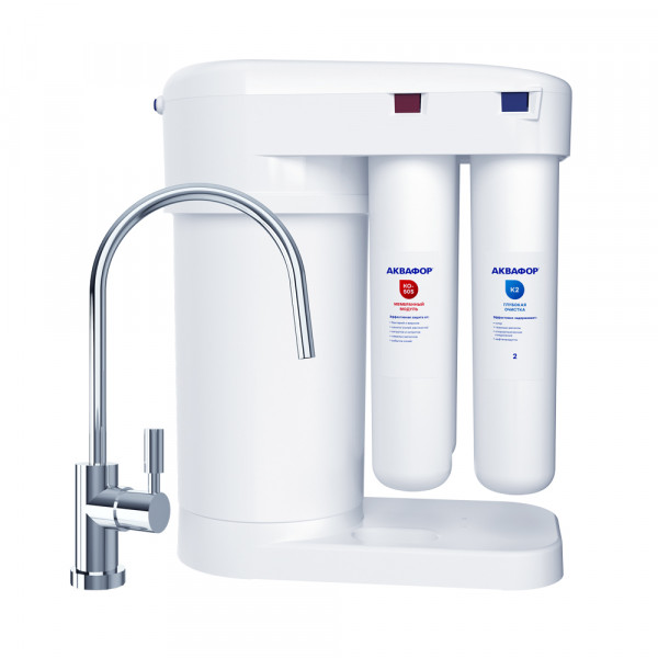 Обратноосмотические фильтры используются для абсолютной защиты от накипи, т.к. полностью устраняют соли жесткости из воды.даЧисло ступеней очисткиКартриджи последовательно очищают воду и от видимых примесей, и от растворенных. Первый картридж задерживает более крупные частицы, а каждый последующий - более мелкие. Чем больше ступеней - тем лучше фильтр очистит воду: поймает более мелкие видимые частицы ржавчины, песка и ила, успеет захватить из воды максимум растворенных примесей - хлора, нитратов, тяжелых металлов и других.4МинерализацияПроисходит после финишной очистки воды. Необходима прежде всего в фильтре обратного осмоса, поскольку такой фильтр полностью устраняет из воды все примеси, в том числе минералы. Минералы добавляются в оптимальной концентрации - для пользы и привычного вкуса воды.даПостфильтрацияФинальный этап очистки воды: картриджи постфильтрации удаляют самые мелкие механические частицы и кондиционируют воду, придавая ей более приятный вкус.даНакопительная емкостьОбычно нужна в фильтрах обратного осмоса. Глубокая фильтрация требует времени. Чтобы Вам не приходилось ждать, пока вода наберется в чайник или кастрюлю, почти во всех моделях используется накопительный бак для чистой воды или другая емкость. В стандартном фильтре обратного осмоса под мойку воды в баке достаточно для семьи из 5-6 человек.даФильтрующий модуль в комплектедаОтдельный крандаДавление в водопроводе не более, атмМаксимальное давление воды на входе в систему, при котором возможна стабильная работа фильтра.6,5Ширина, смОбратите внимание на габариты фильтра, и измерьте, сколько свободного пространства в предполагаемом месте установки.37,1Глубина, смОбратите внимание на габариты фильтра, и измерьте, сколько свободного пространства в предполагаемом месте установки.19,0Защита корпуса от гидроударовдаИсходная водаЖесткая вода – вода с избытком минеральных солей. От нее появляется накипь в чайнике, известковый налет на сантехнике и разводы на посуде. Мягкая вода – та, в которой мало минеральных солей. Нет накипи в чайнике и разводов на посуде. Фильтры для мутной воды и фильтры от ржавчины, как правило, имеют несколько стадий очистки и дополнительный полипропиленовый картридж. Он задерживает механические частицы ила, песка и ржавчины и защищает картриджи более глубокой очистки.любаяУстраняет мутностьМутность водопроводной воды может говорить о том, что в ней много мелких механических частиц. Важно, чтобы в фильтре был установлен дополнительные картридж механической предфильтрации (полипропиленовый) - он продлит жизнь остальным картриджам более тонкой очистки.даУстраняет ржавчину, бурый осадокЛюбой фильтр под мойку удалит из воды крупные и мелкие частицы ржавчины. Некоторые фильтры имеют повышенный ресурс по железу: они дольше служат в такой воде, поскольку лучше подходят для удаления из воды железа и механических частиц ржавчины.даЗащита от бактерийВсе проточные фильтры в той или иной степени защищают от бактерий. Например, добавление серебра препятствует их размножению. Это стандартная степень защиты. Если в семье есть дети, пожилые люди или аллергики, воду рекомендуется обеззараживать, то есть полностью удалять микроорганизмы. Повышенную защиту от бактерий дают фильтры с половолоконной мембраной. Это пучок трубок с по